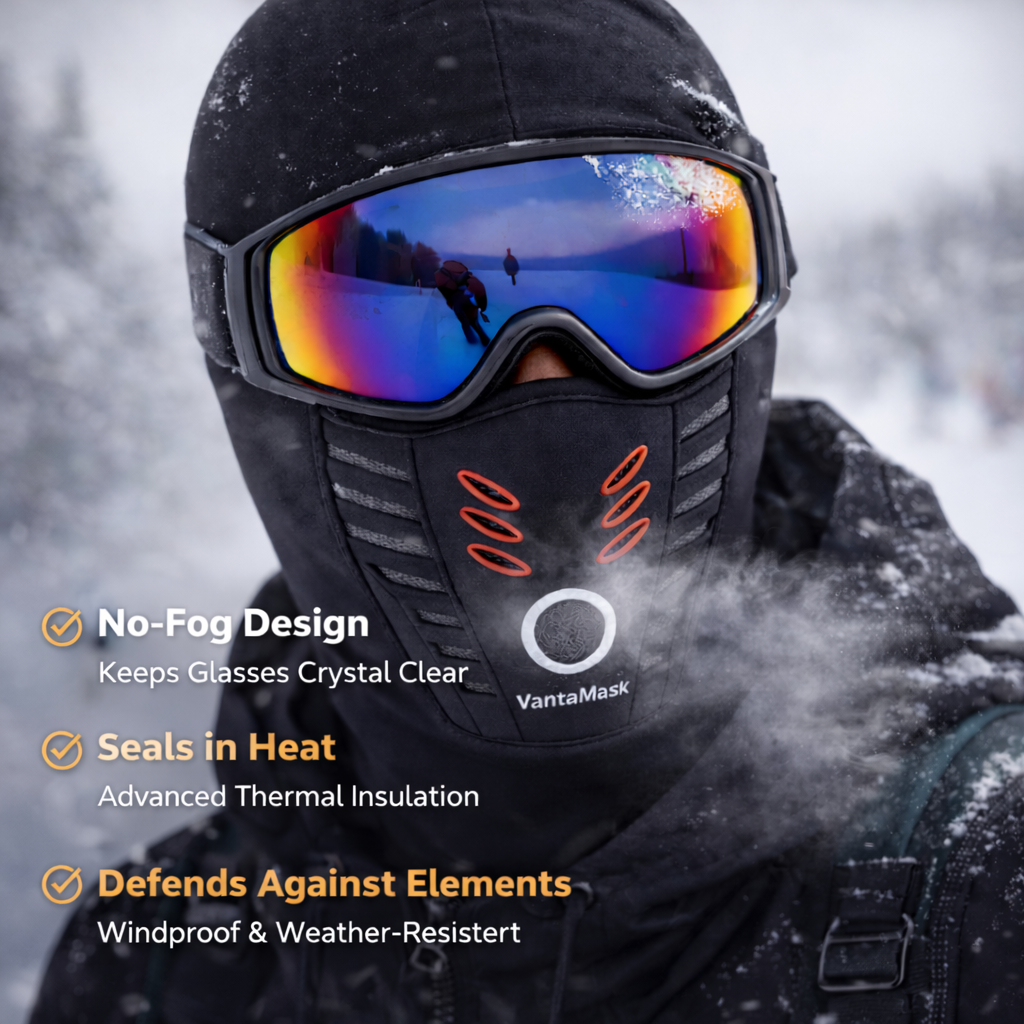VantaMask is engineered to solve the biggest cold-weather problems in one streamlined design. From fogged-up lenses to freezing wind, it delivers clarity, comfort, and protection when standard masks fail.
